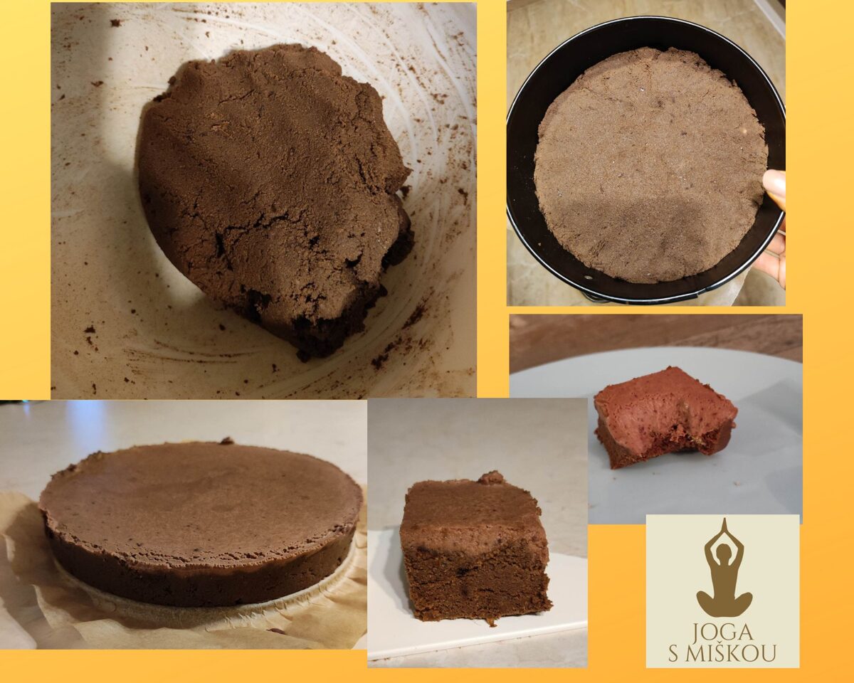 Do kuchyňského robota (mixéru) dáme rozmixovat datle s vodou. Přidáme carob, skořici, vanilku, badyán, sůl a nakonec mouku z tygřích ořechů. Mixujeme tak dlouho, než se směs dobře spojí. Měla by být trošku tekutá. Do této směsi pak ručně vmícháme kokosovou mouku podle potřeby, aby těsto zhutnělo. Potom těsto rukama vymačkáme do malé dortové formy 20x20cm.