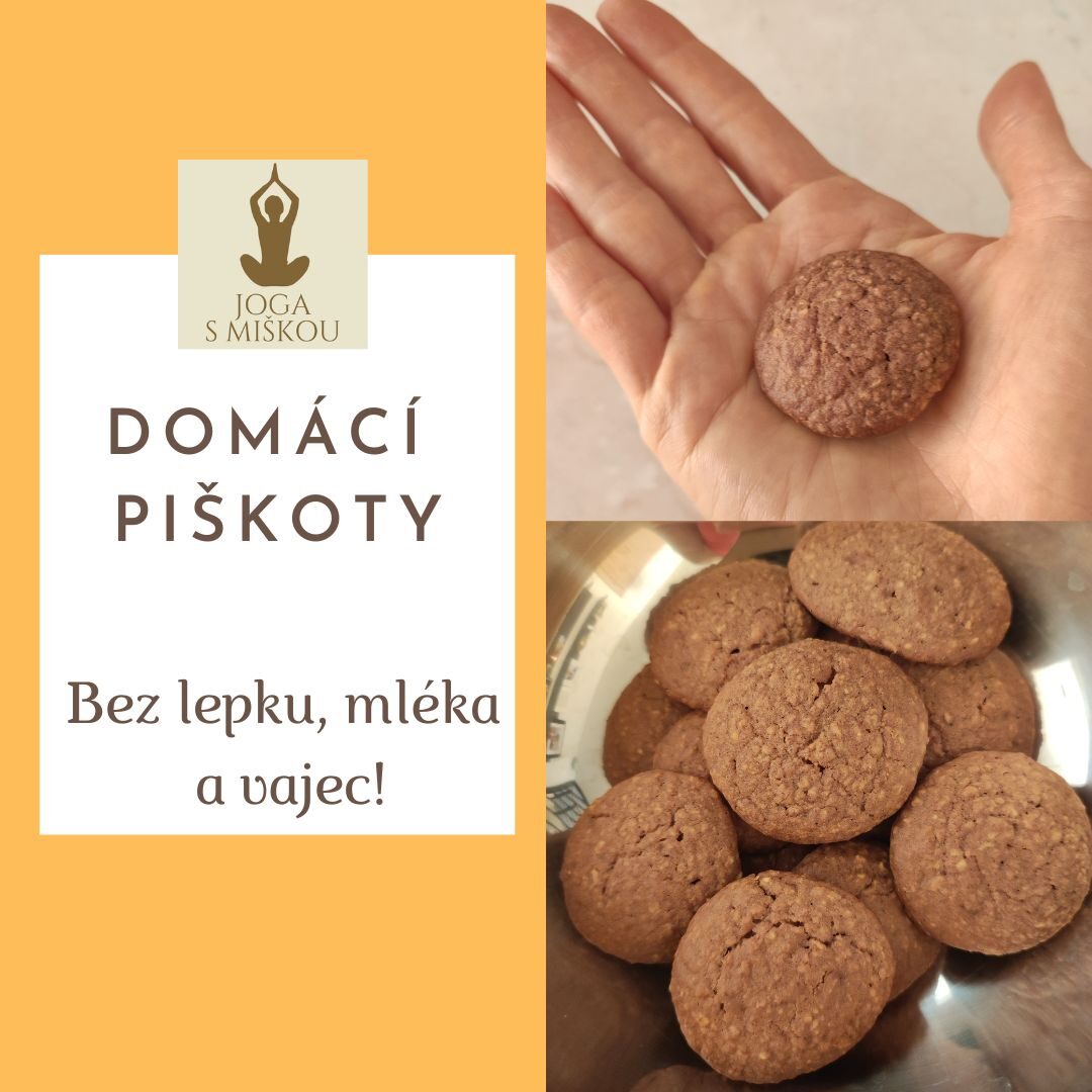 - 100g bezlepkové mouky (můžete namíchat z bezl. ovesných vloček - ty aspoň dobře lepí, pohankovou, rýžovou, trošku mandlové pro oříškovou chuť...), pokud chcete piškoty bílé, tak volte ovesnou, rýžovou a bílou pohankovou mouku.